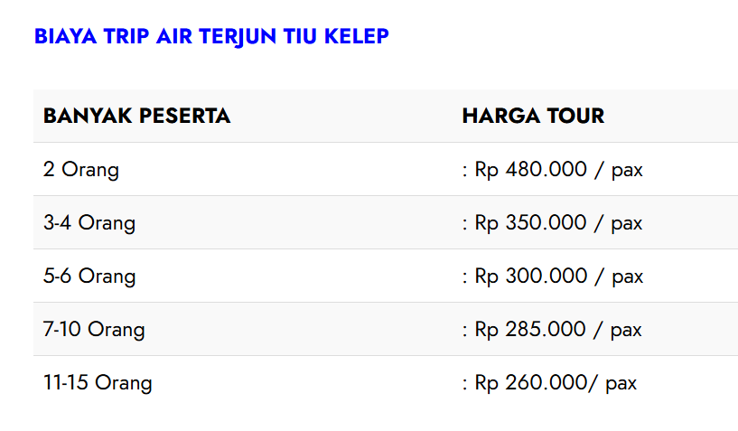 Harga dihitung per pax / per orang
